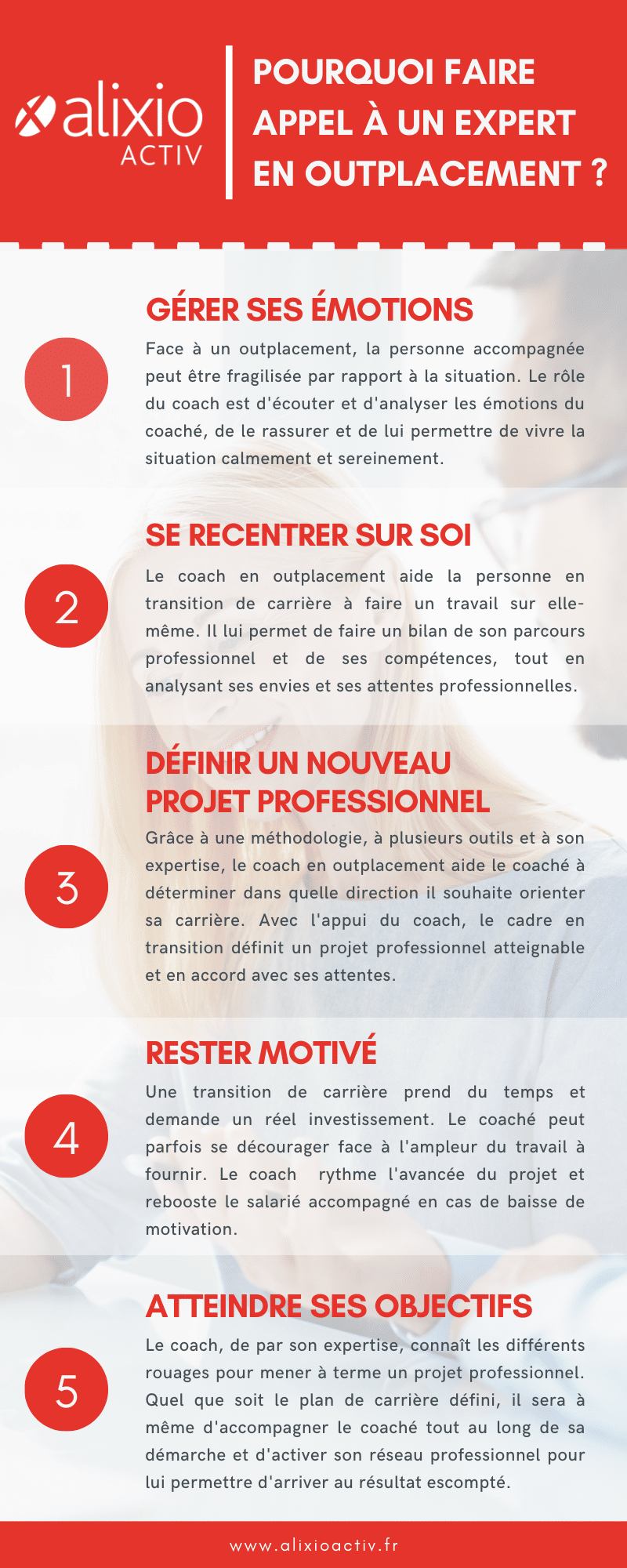 Au travers de notre infographie, découvrez pourquoi il est judicieux de faire appel à un coach expert en outplacement pour réussir son repositionnement dans l’emploi.